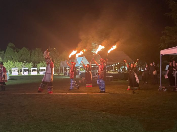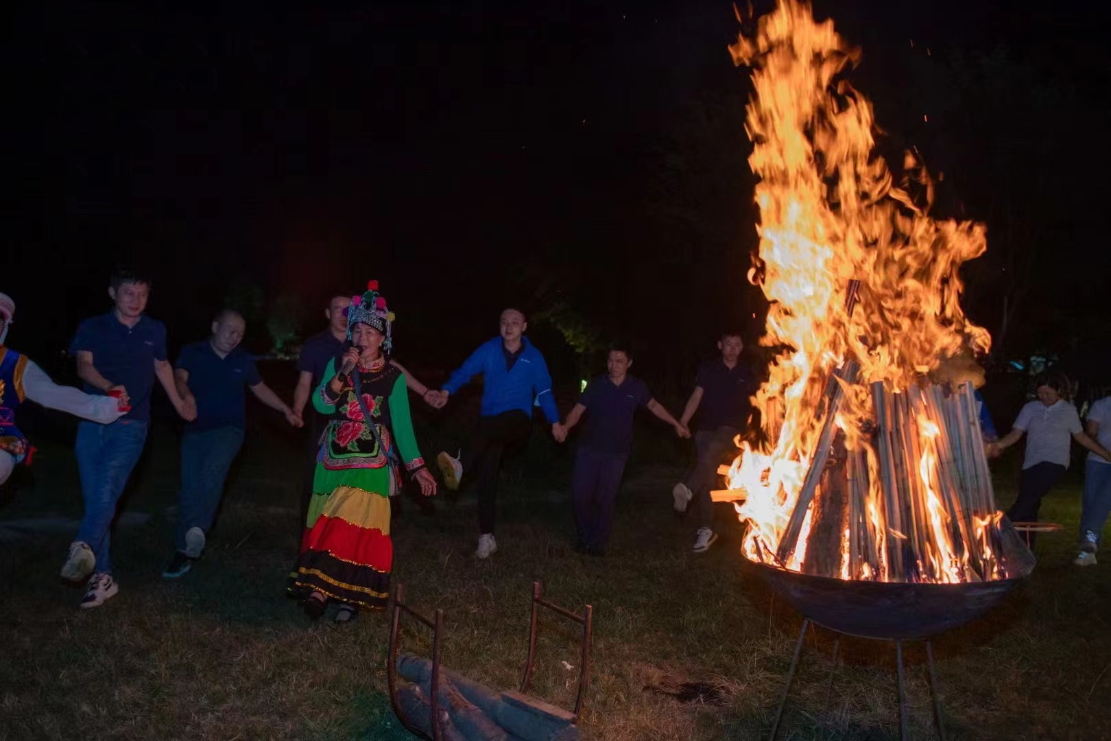 晚上:【篝火晚会】(繁星点点,月光如水,在群山间,篝火边,做游戏,唱歌谣,翩翩起舞)