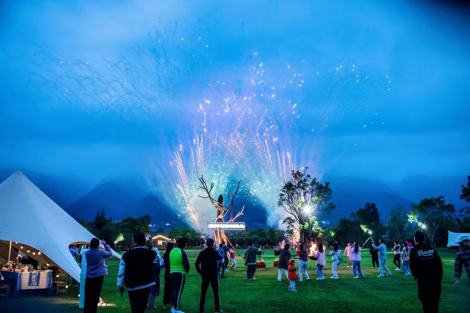 傍晚:天幕露营烧烤晚会(星空下,品美食,曲相伴,尽享大理慢生活)